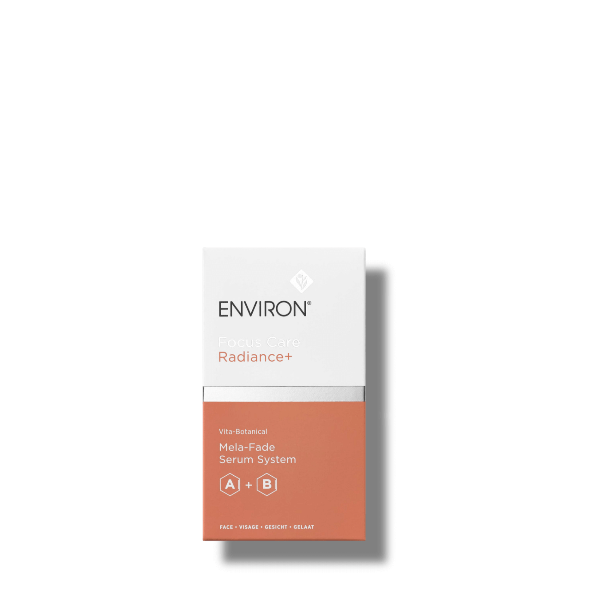 ENVIRON® Vita-Botanical Mela-Fade Serum System (A + B) on täiustatud kaheastmeline seerumisüsteem, mis on loodud ebaühtlase naha pigmentatsiooni vähendamiseks ja naha ühtlase, säravama jume toetamiseks. See on formuleeritud teaduspõhiste vitamiinide ja taimsete koostisosadega ning aitab ennetada pigmendi ülekannet naharakkude vahel, samal ajal ühtlustades naha üldist tooni.